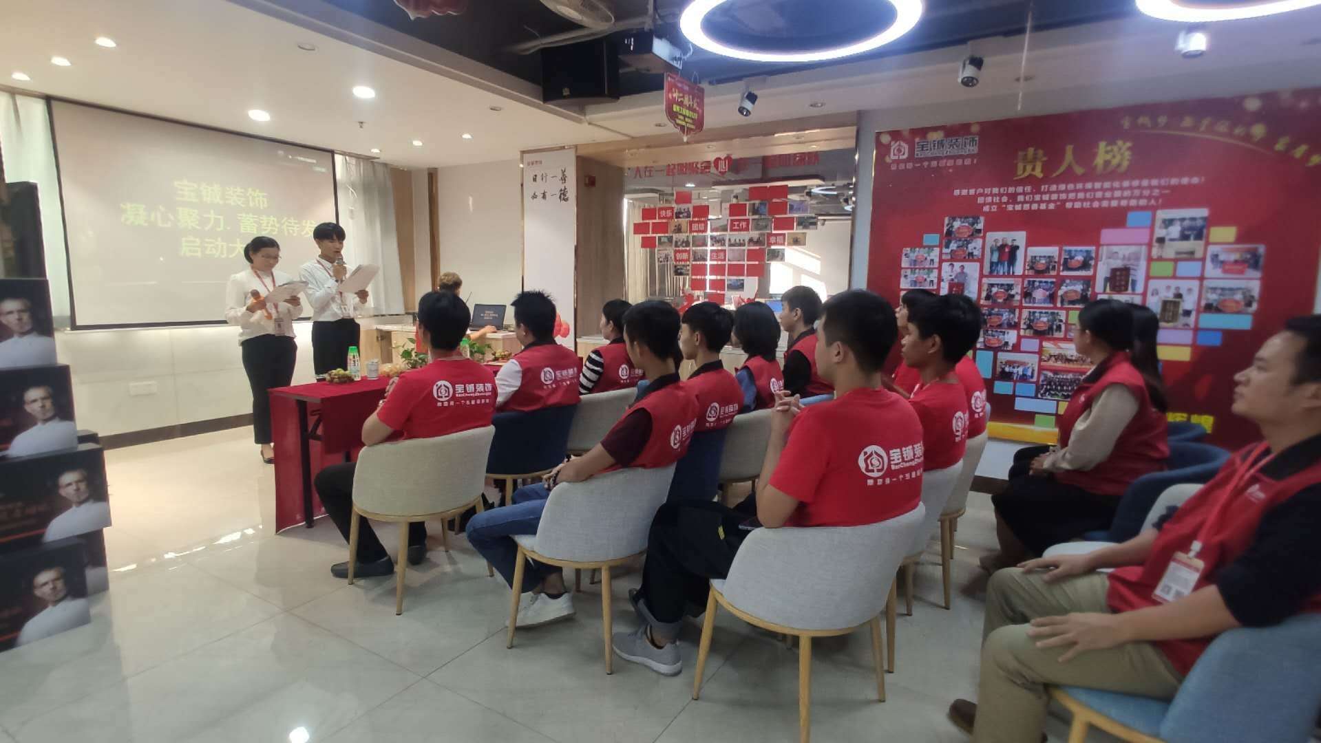 寶鋮裝飾10月啟動(dòng)大會(huì)圓滿成功 2020年10月10日 凝心聚力,蓄勢(shì)待發(fā) 寶鋮裝飾10月啟動(dòng)大會(huì) 拉開帷幕 嚴(yán)肅的氣氛,認(rèn)真的表情 在國歌堅(jiān)強(qiáng)有力的曲調(diào)中 寶鋮人的使命感充滿著整個(gè)會(huì)議 熱血像那紅日光 雄風(fēng)男兒當(dāng)自強(qiáng) 為我們的理想去闖看碧波高壯 又看碧空廣闊浩氣場(chǎng) 最重要的人物總是會(huì)在最后才閃亮登場(chǎng)的,你們認(rèn)同嗎? 小寶聽到了你們肯定的回答了,你們的覺悟真高! 作為寶鋮裝飾的創(chuàng)始人,陳總對(duì)它傾注了全部心血,讓它充滿活力! 作為寶鋮裝飾的領(lǐng)導(dǎo)人,陳總對(duì)我們也是一直密切關(guān)注,讓我們每個(gè)人得到成長!